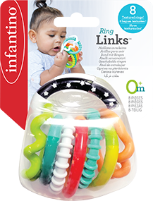 Give little hands and little mouths something interesting to explore. These links attach to each other and also attach to car seats, strollers, high chairs and diaper bags. Easy to grab and fun to shake, listen to them rattle and clack!